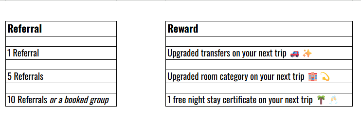 👉 Share your travel advisor's contact info + have your referral mention your name!